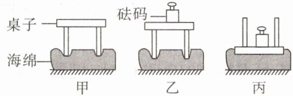 B.图乙中桌子受到的砝码的压力和海绵对桌子的支持力大小相等,所以桌子静止