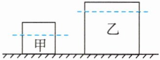6. 如图所示,均匀正方体甲、乙置于水平地面上,甲、乙对地面的压强分别为$p_{甲}$、$p_{乙}$。若沿水平方向截去相同体积后,甲、乙剩余部分对地面的压强相等。则 (
