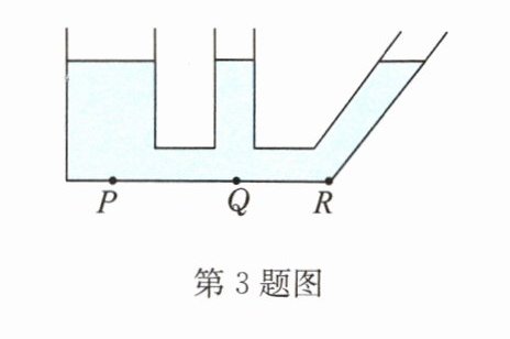 3. 如图所示,连通器内盛有同种液体,液体对底部P、Q、R三处的压强 (