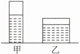 9. 如图所示,放于水平桌面上的两个质量相等但高度和底面积均不相等的圆柱形容器,盛有相同质量的同种液体,液体对容器底部的压强关系是:$p_{甲}$