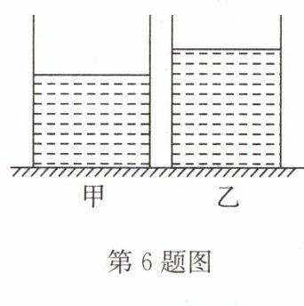6.(北京中考)两个完全相同的圆柱形容器静止放在水平桌面上,其中分别装有质量相等的水和酒精,液面高度如图所示。甲容器中液体对容器底部的压强和压力分别为p₁和F₁,乙容器中液体对容器底部的压强和压力分别为p₂和F₂;甲容器对桌面的压强和压力分别为p'₁和F'₁,乙容器对桌面的压强和压力分别为p'₂和F'₂。已知水的密度大于酒精的密度,则下列判断中正确的是(