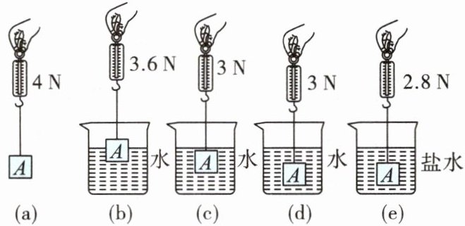3. 如图所示是探究“影响浮力大小的因素”的一些实验操作步骤。请你针对某一个探究因素,从中选择相应的实验操作步骤,并根据弹簧测力计的示数,说明你的探究结论。