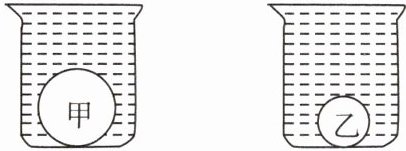 5. (广州中考)两个相同的烧杯中分别装满了两种不同的液体,把甲、乙两球分别轻轻放入两杯液体中,最后处于如图所示状态。甲、乙排开液体的重力相等,甲、乙所受浮力相比(