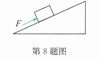 8. 如图所示,把重为40N的物体从斜面底端匀速推到斜面顶端,斜面长2m,高0.6m,沿斜面的推力F为20N。那么,此过程中有用功是