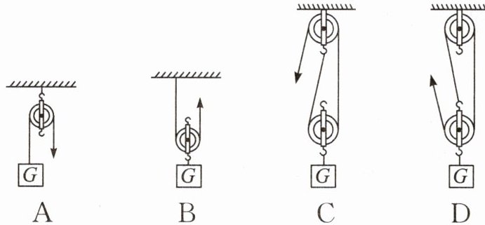 3. 用下列装置将同一物体匀速提高h,不计滑轮重、绳重及摩擦,最省力的是 (