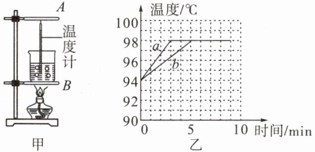 (2)某小组用相同的装置先后做了两次实验,绘制出如图乙所示的a、b两条图线。由图可知:实验中水的沸点为