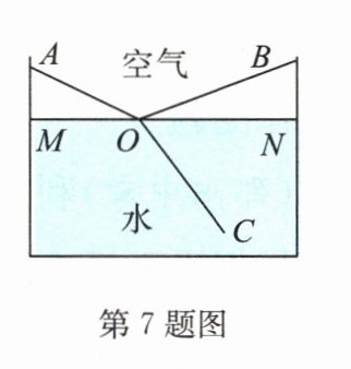 7.(北京中考)一束单色光从空气斜射入水中的情境如图所示。下列说法正确的是(