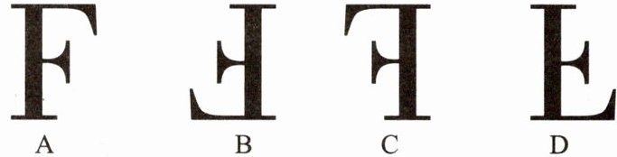 2. 放映幻灯片时,想使银幕上出现放大的“F”字时,则幻灯片在镜头前正确的放置方法应是图中的(