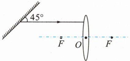 14.(衡阳中考)如图所示,请补充平面镜的入射光线和透镜的折射光线,完成光路图。