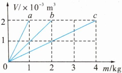 6. 不同材料组成的a、b、c三个实心物体,它们的体积与质量的关系如图所示,由图可知下列说法正确的是(
