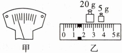 调节。测量物体质量时, 右盘砝码及游码示数如图乙, 物体质量为26.4