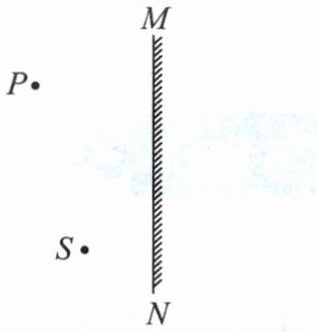 4.(滨州中考)如图所示,S为发光点,请在图中画出发光点S在平面镜MN中所成像S'的位置,并画出由S点发出,经平面镜反射后通过P点的光线。