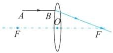 2.(重庆中考)如图所示,请画出平行于主光轴的入射光线AB经凸透镜折射后的光线。