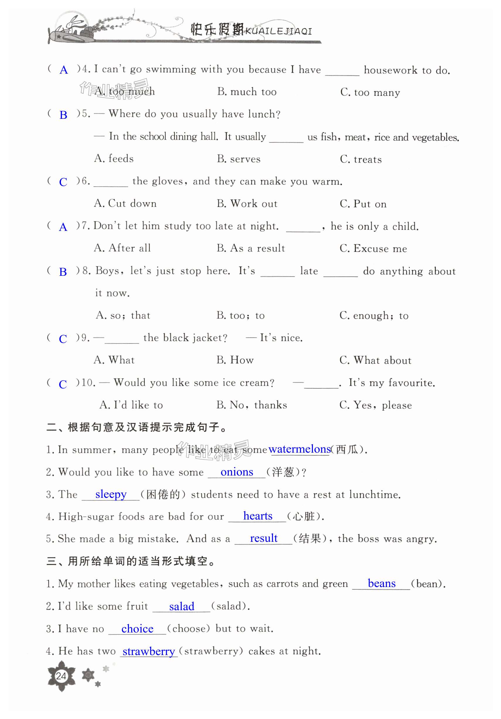 注:目前有些书本章节名称可能整理的还不是很完善,但都是按照顺序排列的,请同学们按照顺序仔细查找。练习册 2025年暑假作业长江少年儿童出版社七年级英语海南专版 答案主要是用来给同学们做完题方便对答案用的,请勿直接抄袭。