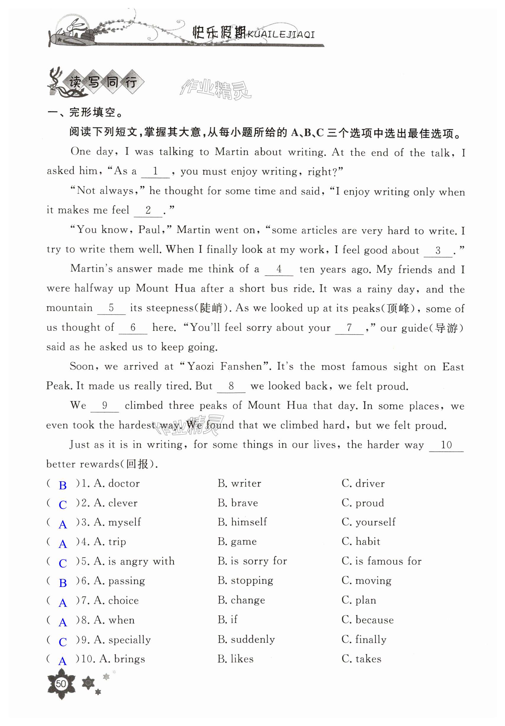 注:目前有些书本章节名称可能整理的还不是很完善,但都是按照顺序排列的,请同学们按照顺序仔细查找。练习册 2025年暑假作业长江少年儿童出版社七年级英语海南专版 答案主要是用来给同学们做完题方便对答案用的,请勿直接抄袭。