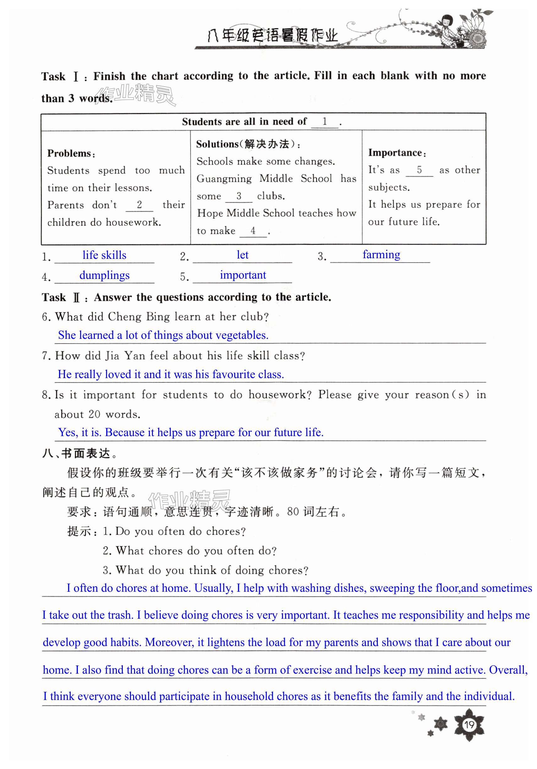 注:目前有些书本章节名称可能整理的还不是很完善,但都是按照顺序排列的,请同学们按照顺序仔细查找。练习册 2025年暑假作业长江少年儿童出版社八年级英语海南专版 答案主要是用来给同学们做完题方便对答案用的,请勿直接抄袭。