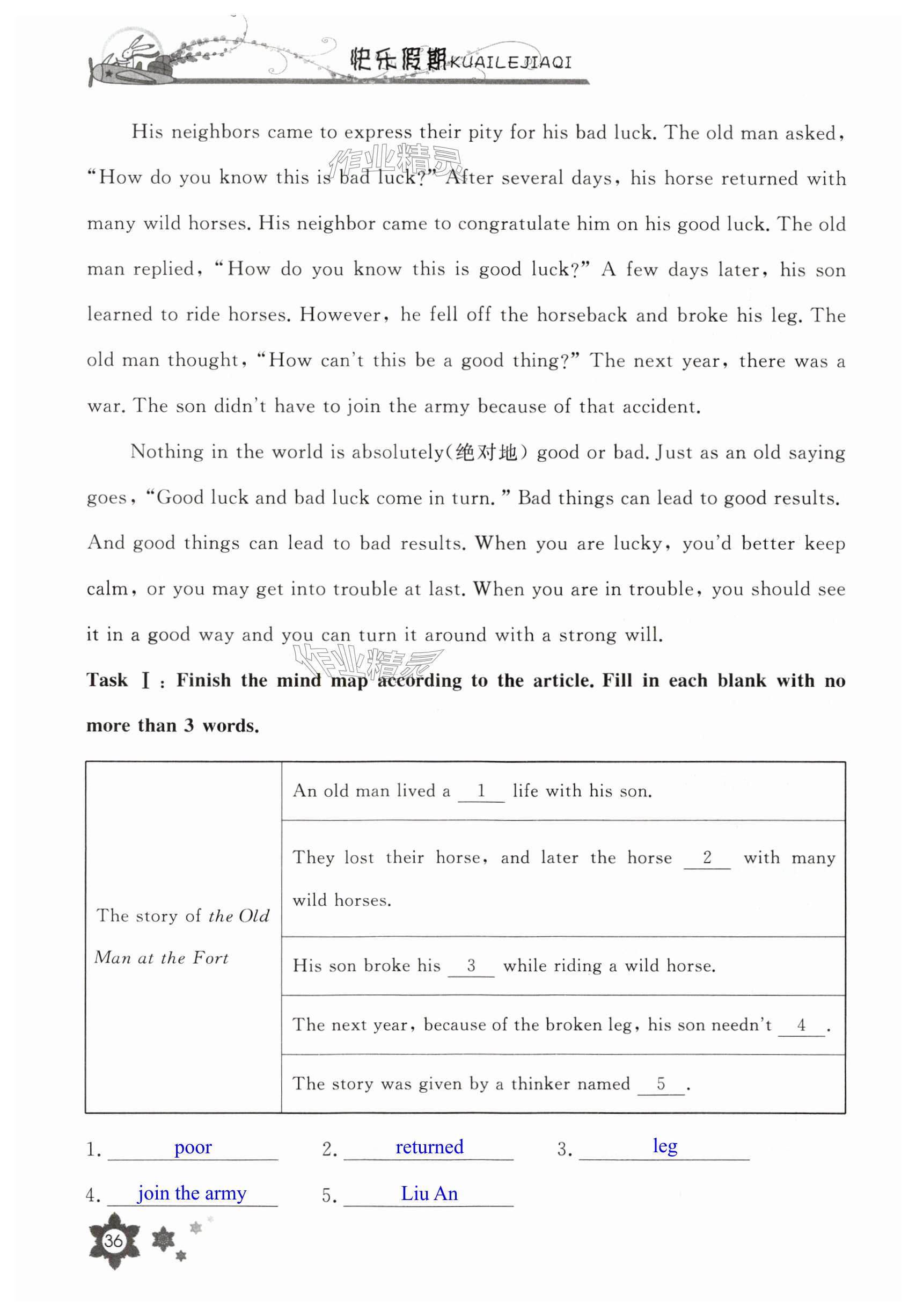 注:目前有些书本章节名称可能整理的还不是很完善,但都是按照顺序排列的,请同学们按照顺序仔细查找。练习册 2025年暑假作业长江少年儿童出版社八年级英语海南专版 答案主要是用来给同学们做完题方便对答案用的,请勿直接抄袭。