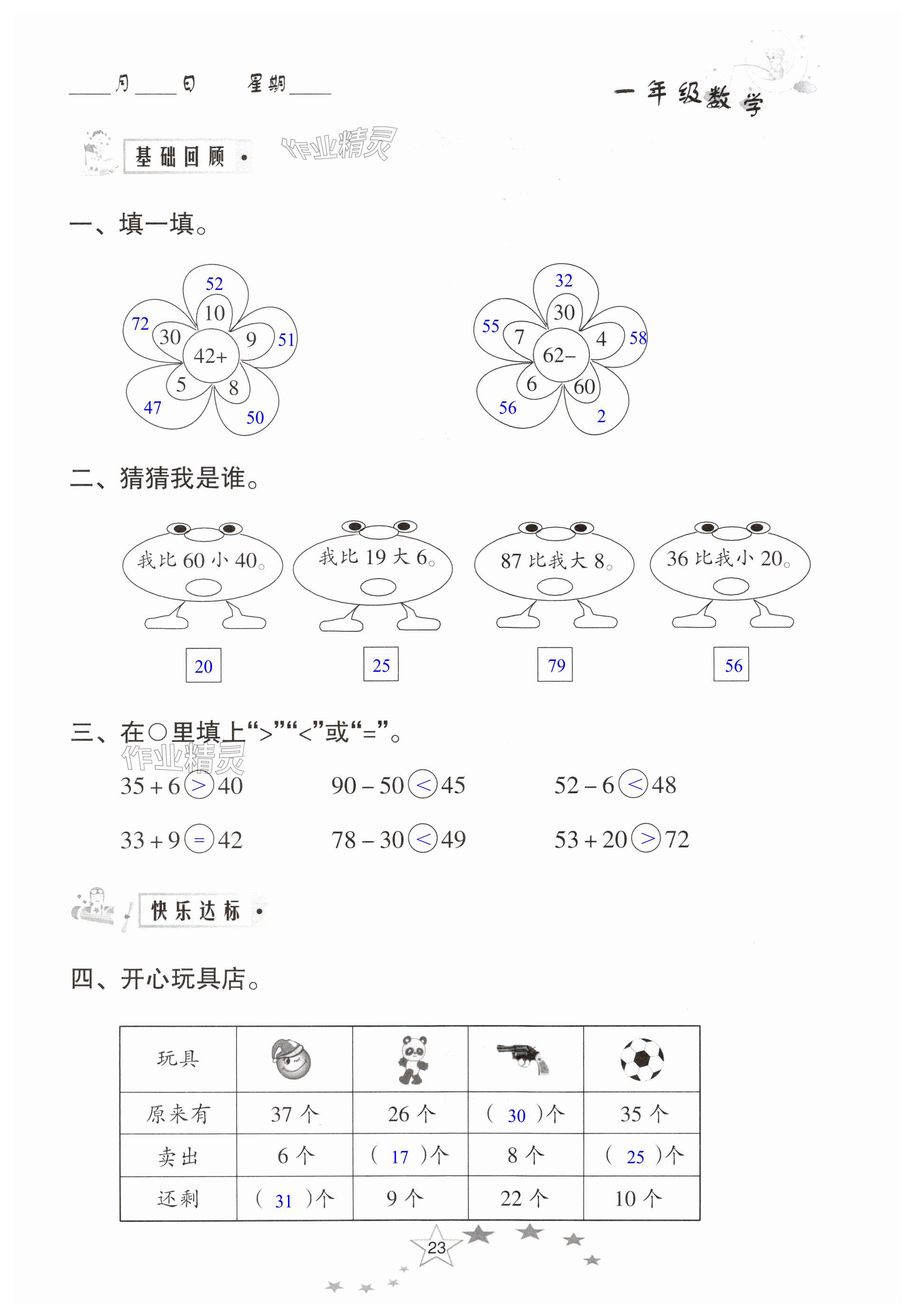 2025年暑假作业南方出版社一年级数学