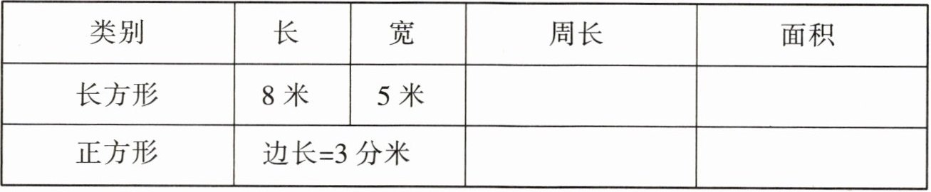- 长方形周长:根据长方形周长公式$C=(a + b)×2$(其中$a$为长,$b$为宽),可得$(8 + 5)×2 = 26$(米)。