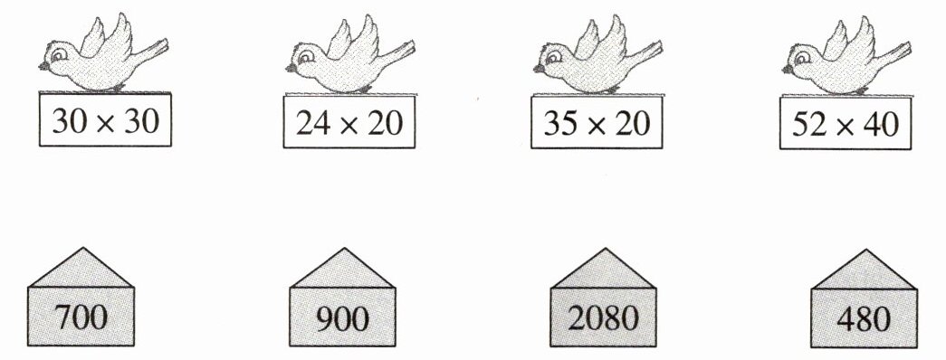 【答案】:$30×30$与$900$相连;$24×20$与$480$相连;$35×20$与$700$相连;$52×40$与$2080$相连。