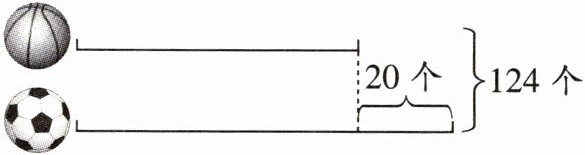 1.【解析】:设篮球有$x$个,因为足球比篮球多$20$个,则足球有$x + 20$个。已知篮球和足球一共有$124$个,可列方程$x+(x + 20)=124$。化简方程得$2x+20 = 124$,方程两边同时减$20$:$2x=124 - 20$,即$2x=104$,方程两边同时除以$2$:$x = 52$。那么足球个数为$x + 20=52+20 = 72$(个)。【答案】:篮球有$52$个,足球有$72$个。