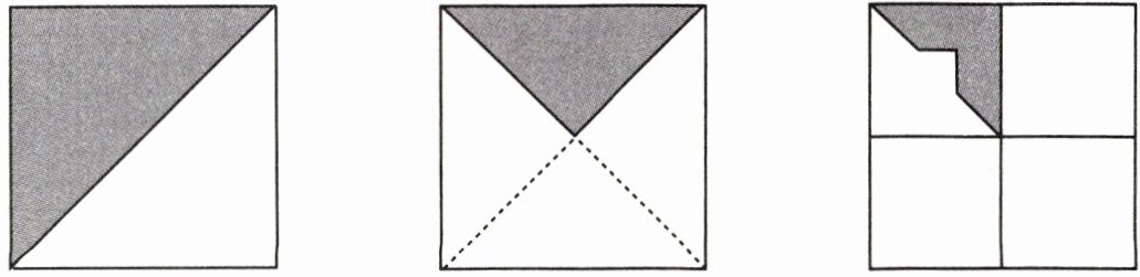 七、把一张纸对折三次(如下图),能剪出怎样的图案?还能剪出更多的图案吗?你来试一试。