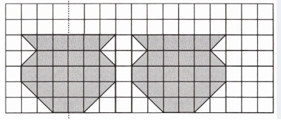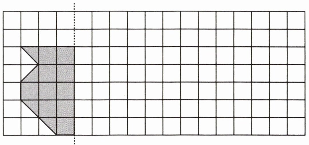 六、根据对称轴补全下面的图形,再画出这个轴对称图形向右平移7格后的图形。