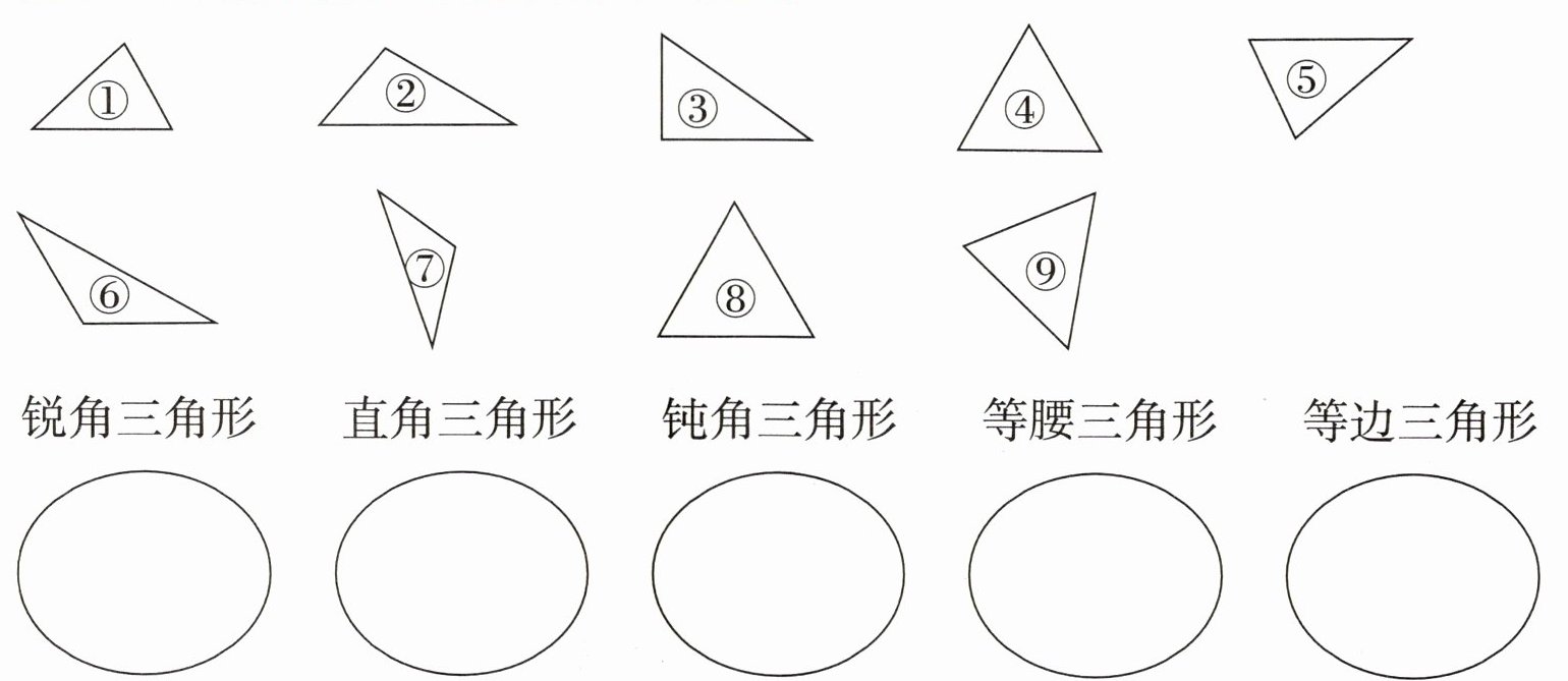二、把下面三角形的序号填在相应的圈里。