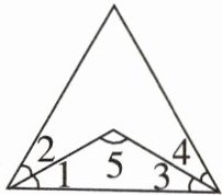如右下图,在等边三角形内有一个等腰三角形,并且$∠1=∠2,∠3=∠4$,求$∠5$的度数。