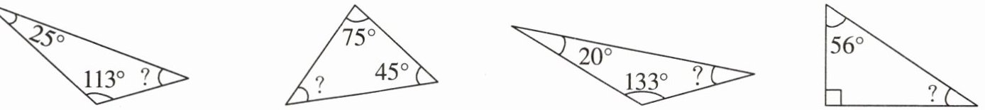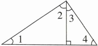 2. 右下图的三角形中,$\angle 1 = 35^{\circ}$,$\angle 2+\angle 3 = 90^{\circ}$,求$\angle 2$、$\angle 3$和$\angle 4$的度数。