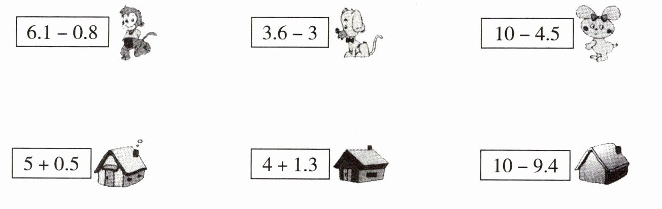 所以$6.1 - 0.8$和$4 + 1.3$结果相等,$3.6 - 3$和$10 - 9.4$结果相等,$10 - 4.5$和$5 + 0.5$结果相等,应将它们分别连线。