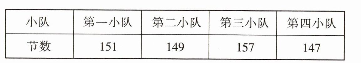 【解析】:1. 比较四个小队收集废电池的节数$157>151>149>147$,可得第三小队收集得最多,有$157$节。
