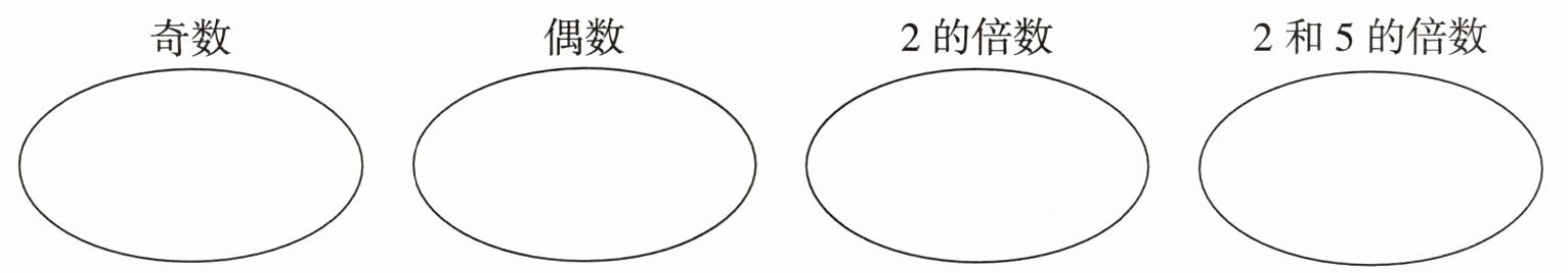 【解析】:奇数是不能被$2$整除的整数,所以奇数有$21$、$23$、$19$、$45$、$361$;偶数是能够被$2$整除的整数,所以偶数有$18$、$10$、$72$、$20$、$66$、$90$;$2$的倍数的特征是个位是$0$、$2$、$4$、$6$、$8$的数,所以$2$的倍数有$18$、$10$、$72$、$20$、$66$、$90$;$2$和$5$的倍数的特征是个位是$0$的数,所以$2$和$5$的倍数有$10$、$20$、$90$。