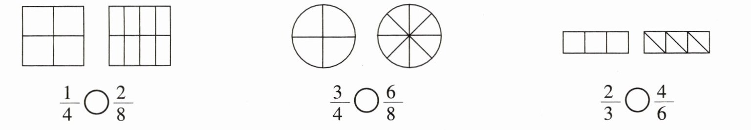 可以发现它们涂色部分大小相同,因为$\frac{3}{4}=\frac{3\times2}{4\times2}=\frac{6}{8}$。