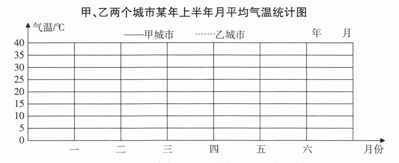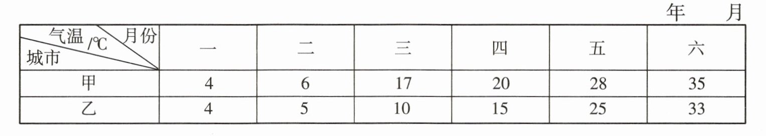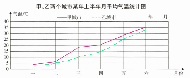 四、下面是甲、乙两个城市某年1~6月的月平均气温统计表。