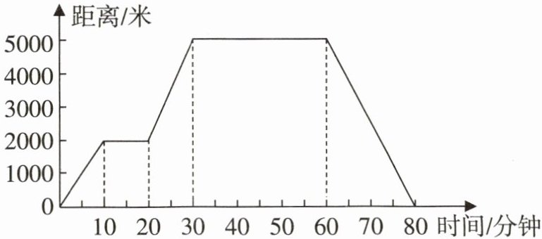 - 返回速度:返回路程是$5000$米,返回时间是$80 - 60 = 20$分钟,根据速度$=$路程$\div$时间,$5000\div20 = 250$(米/分)。