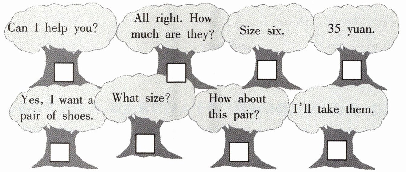 六、按对话顺序排列下列句子,把序号标在树干上。