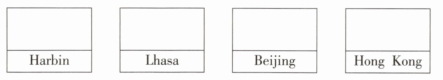 五、读句子,根据句意画出每个城市相应的天气符号。