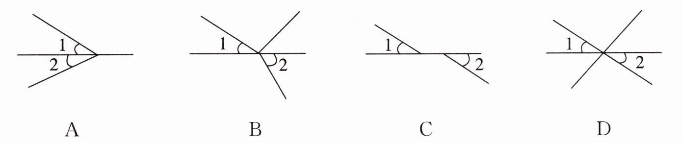 1. 下列图形中,$\angle 1$和$\angle 2$是对顶角的是 …………………………………………………(