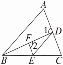 $\because \angle A=\angle DEF$,$\therefore \angle EDC=\angle DEF$。