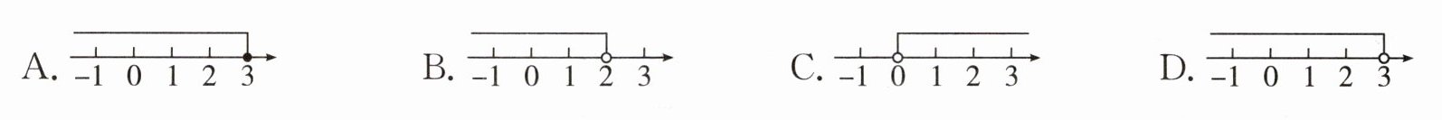 2. 若一个不等式的正整数解只有 1,2,则该不等式的解集在数轴上的表示可能是 …(