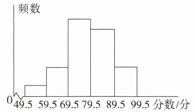 5. 某校在“创新素质实践行”活动中,组织学生进行社会调查,并对学生的调查报告进行了评比. 如图是将某年级60篇学生调查报告进行整理,分成5组画出的频数分布直方图. 已知从左到右5个小长方形高的比为1:3:7:6:3,那么在这次评比中被评为优秀的调查报告有(分数均为整数,分数大于或等于80分为优秀) ……………………………(