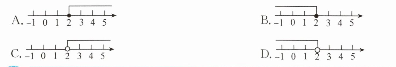 6. 如图,不等式$x+1≥2x-1$的解集在数轴上表示正确的是 ……………………(