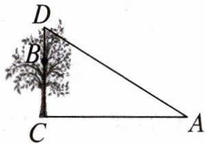 17. (12分)如图,有两只猴子在一棵树$CD$上的点$B$处,且$BC = 5\mathrm{m}$,它们都要到$A$处的池塘去喝水,其中一只猴子沿树爬下走到离树$10\mathrm{m}$处的池塘$A$处,另一只猴子爬到树顶$D$后直线跃向池塘的$A$处.如果两只猴子所经过的路程相等,那么这棵树高有多少米?