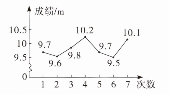 3. 在学校的体育训练中,小杰投掷实心球的7次成绩如统计图所示,则这7次成绩的中位数和平均数分别是 ………………………………………………………………………(