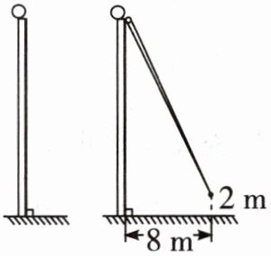 8. 如图,小亮将升旗的绳子拉到旗杆底端,绳子末端刚好接触到地面,然后将绳子末端拉到距离旗杆8m处,发现此时绳子末端距离地面2m,则旗杆的高度为(滑轮上方的部分忽略不计) ……………………(