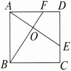 7. 如图,在正方形$ABCD$中,$E$,$F$分别是边$CD$,$AD$上的点,且$CE=DF$.$AE$与$BF$相交于点$O$,下列结论:①$AE=BF$;②$AE⊥BF$;③$AO=OE$;④$∠BAE=∠AFB$.其中错误的有 ……………………………………………(