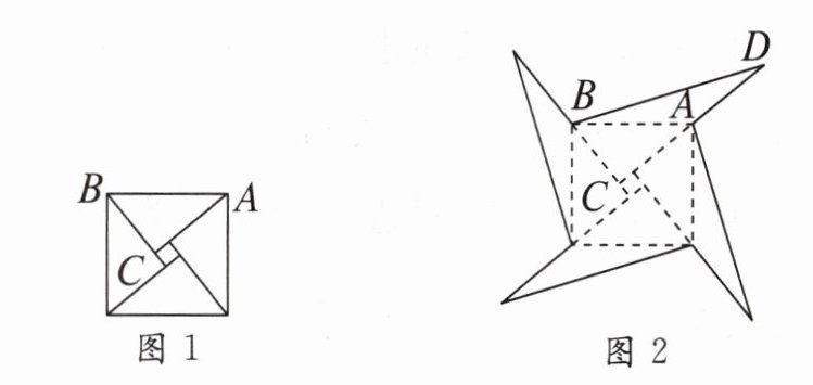 10. 如图1是我国古代著名的“赵爽弦图”的示意图,它是由四个全等的直角三角形围成的,若$AC = 6$,$BC = 5$,将四个直角三角形中边长为$6$的直角边分别向外延长一倍,得到如图2所示的“数学风车”,则这个风车的外围周长是______