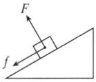 10. 在图中画出正在沿斜面向上滑动的物块所受摩擦力 $ f $ 与支持力 $ F $ 的示意图。