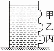 11. 如图所示,一个圆柱形玻璃管侧壁上开有甲、乙、丙三个小孔,孔上扎有橡皮膜,往管内注满水后可以看到三个小孔上的橡皮膜都向外凸出,其中凸出最多的是 ……(
